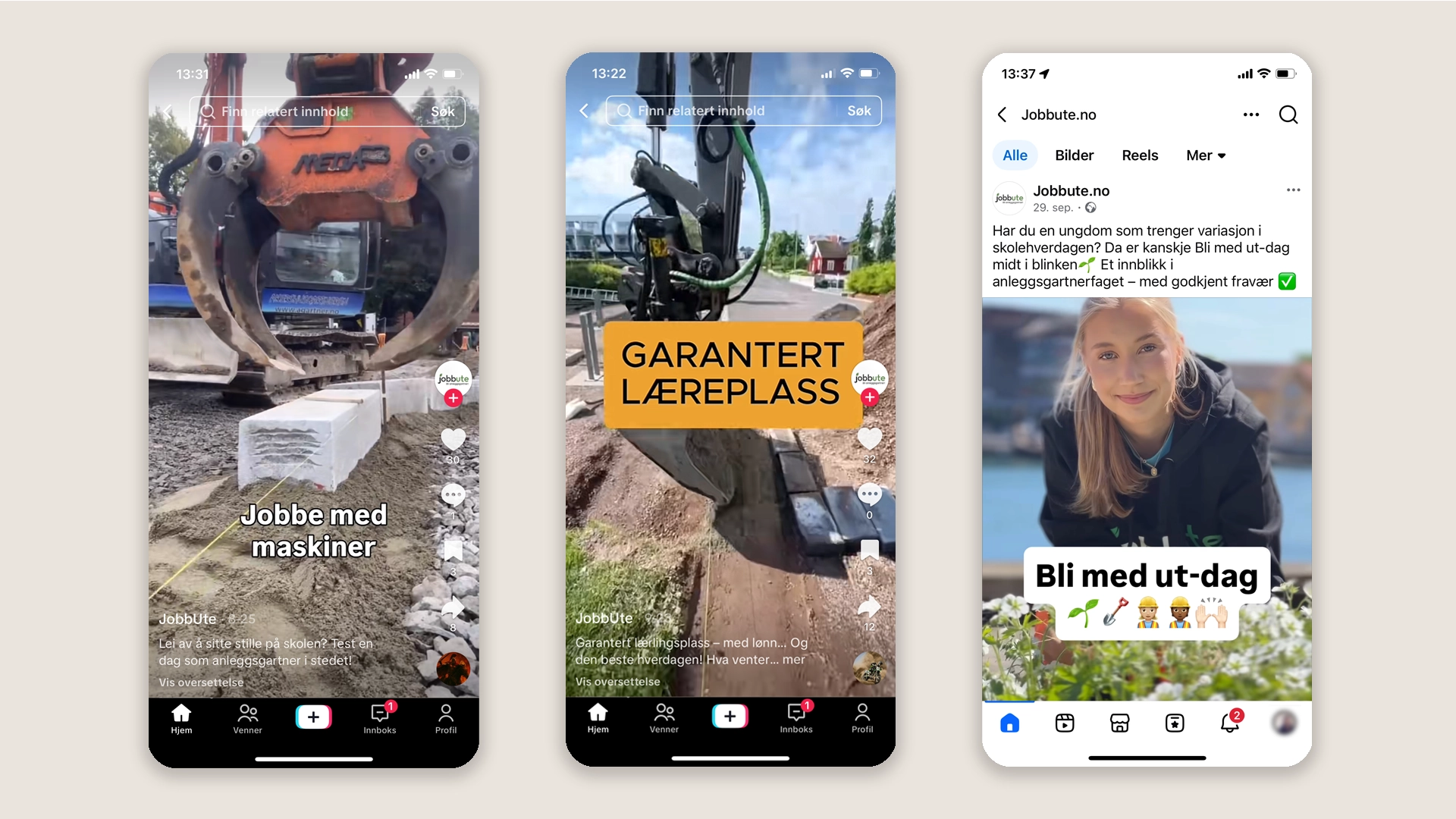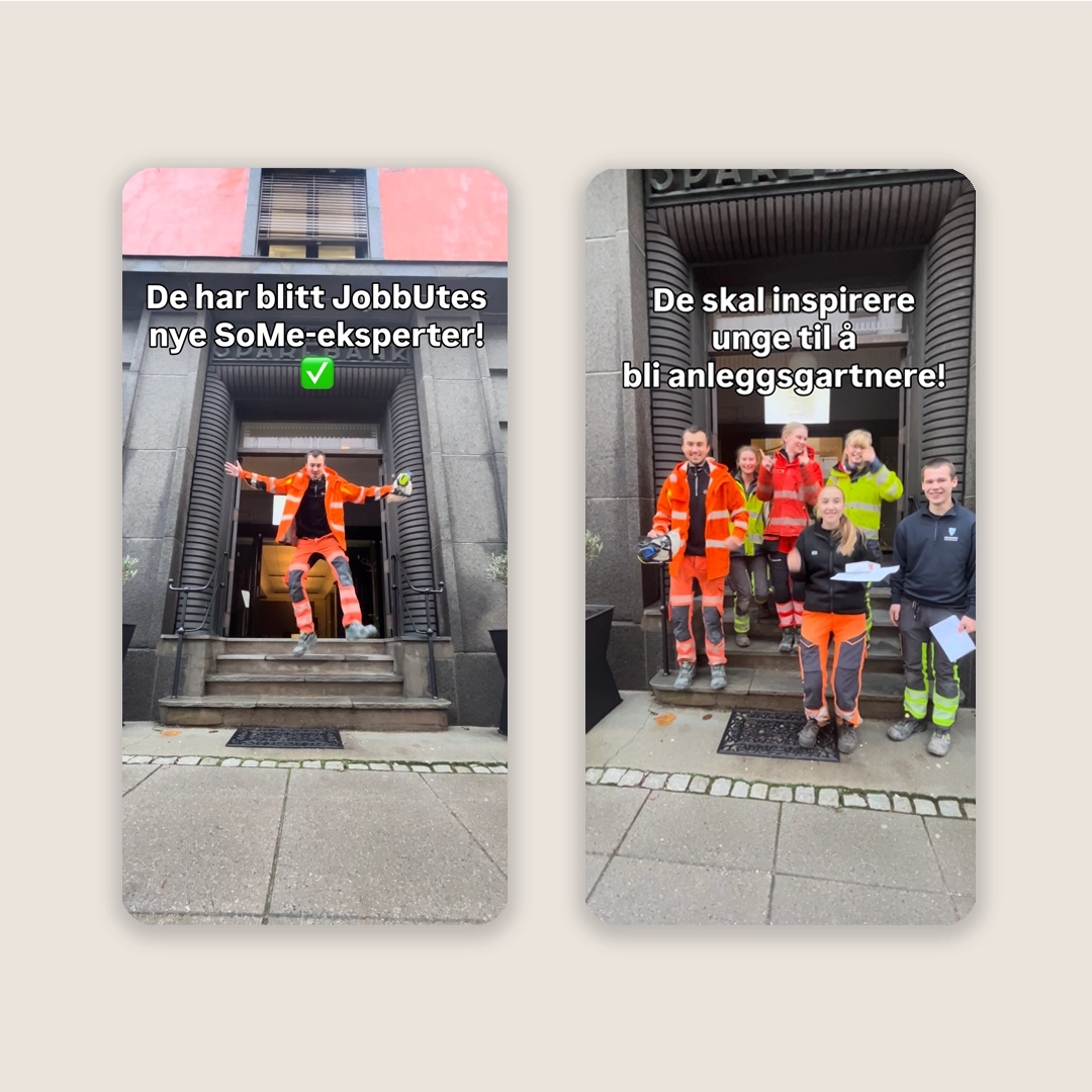 Høsten 2026 tok vi også i bruk TikTok. Alle ambassadørene fikk opplæring hos Berg Allum, og kanalen ble raskt et viktig verktøy for å nå unge der de faktisk er. Målet er at ambassadørene skal være selvgående på å dele innhold, og slik oppnå organisk spredning av budskapet om at Jobben er best ute!