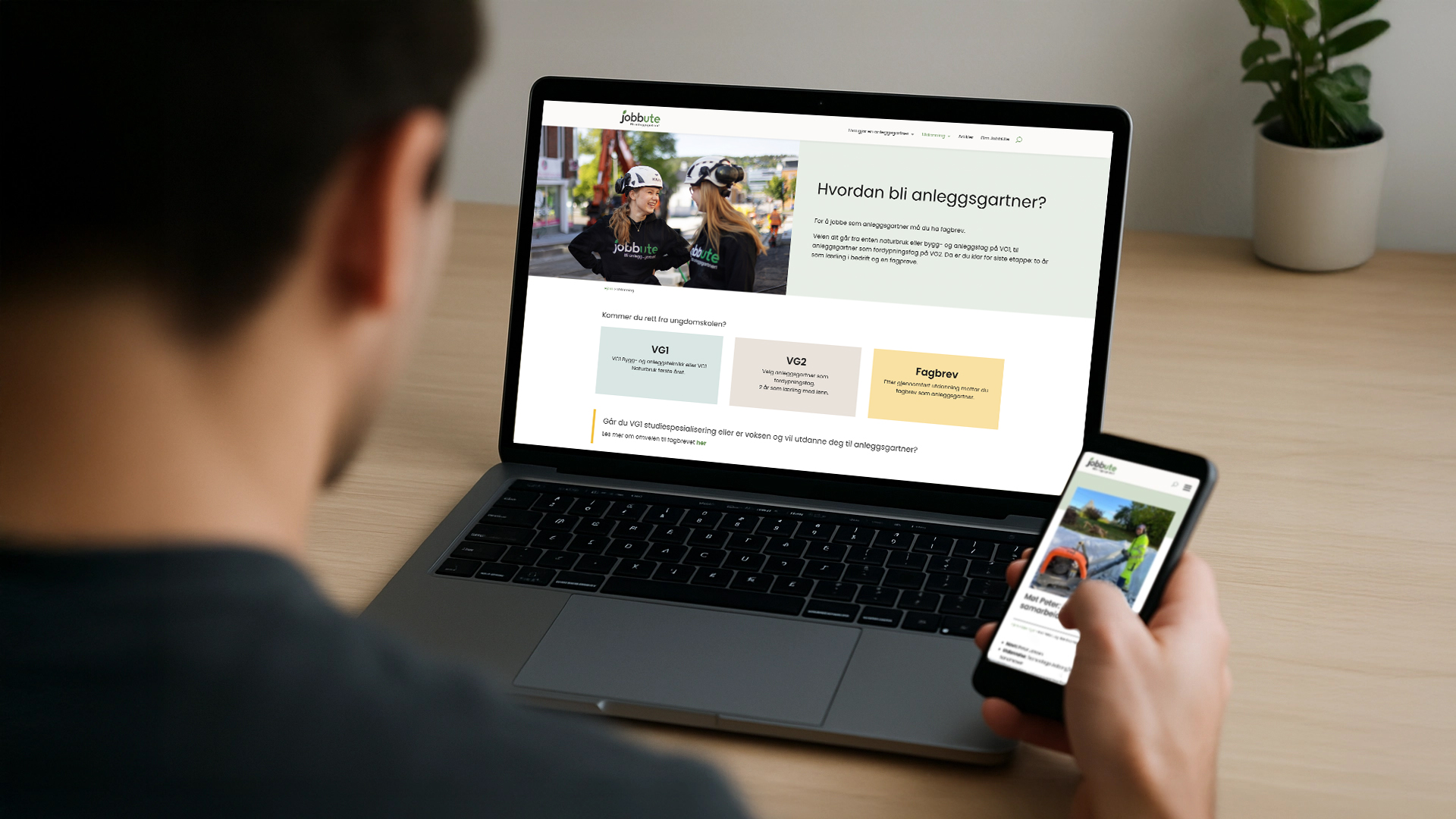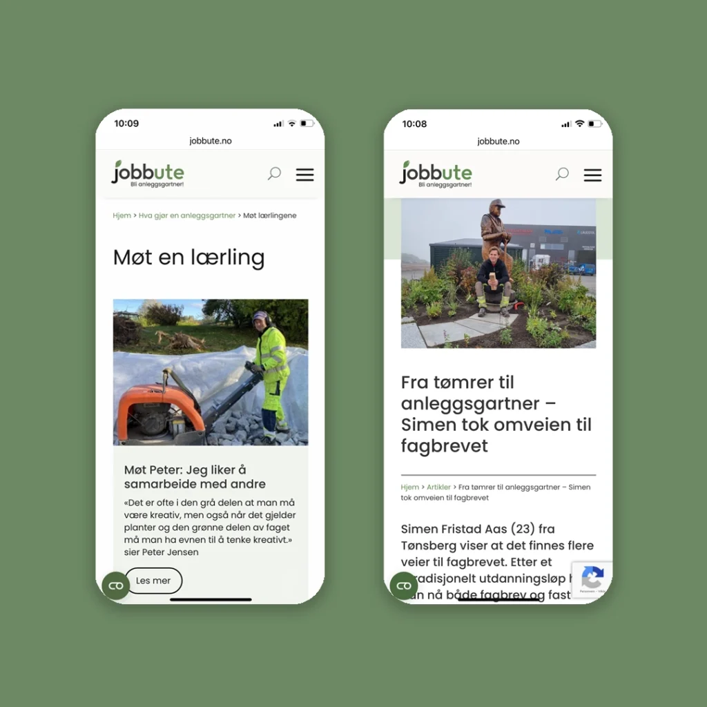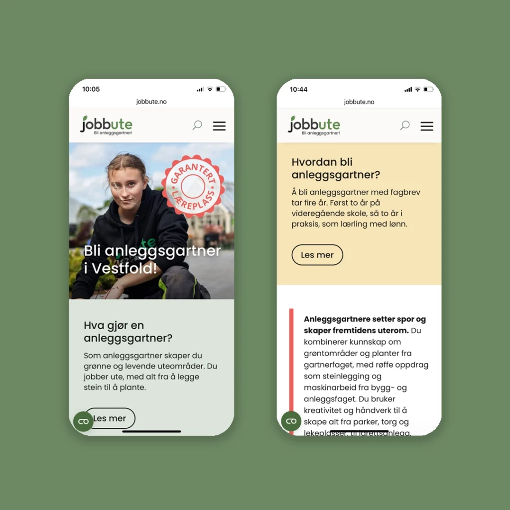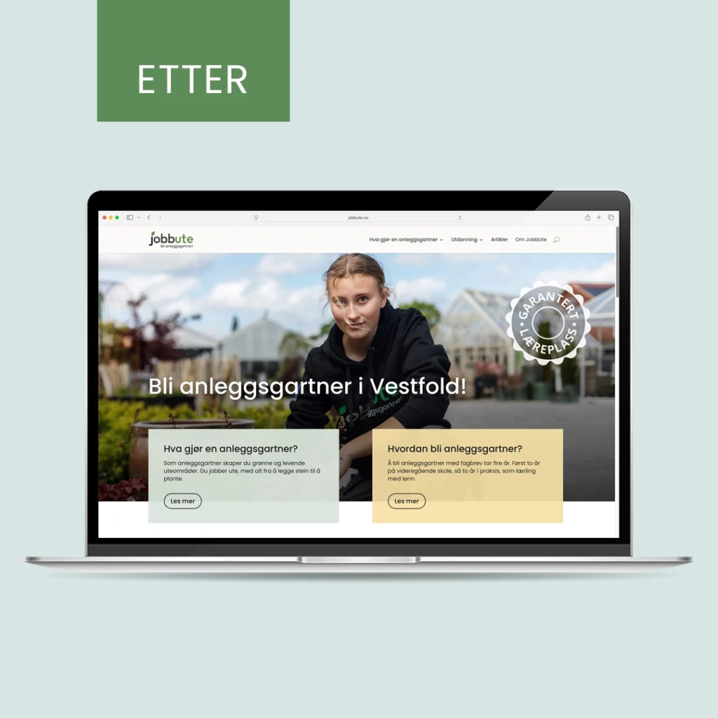 JobbUte er et felles rekrutteringsprosjekt mellom flere anleggsgartnerbedrifter i Vestfold og Gjennestad videregående skole. Målet er å knytte bransje og utdanning tettere sammen, gjøre veien til lærlingplass enklere og viktigst: øke interessen for faget. Berg Allum er stolt av å ha vært en del av utformingen av konseptet, som helt fra start har vært en suksess, med søkertall som har økt år for år.